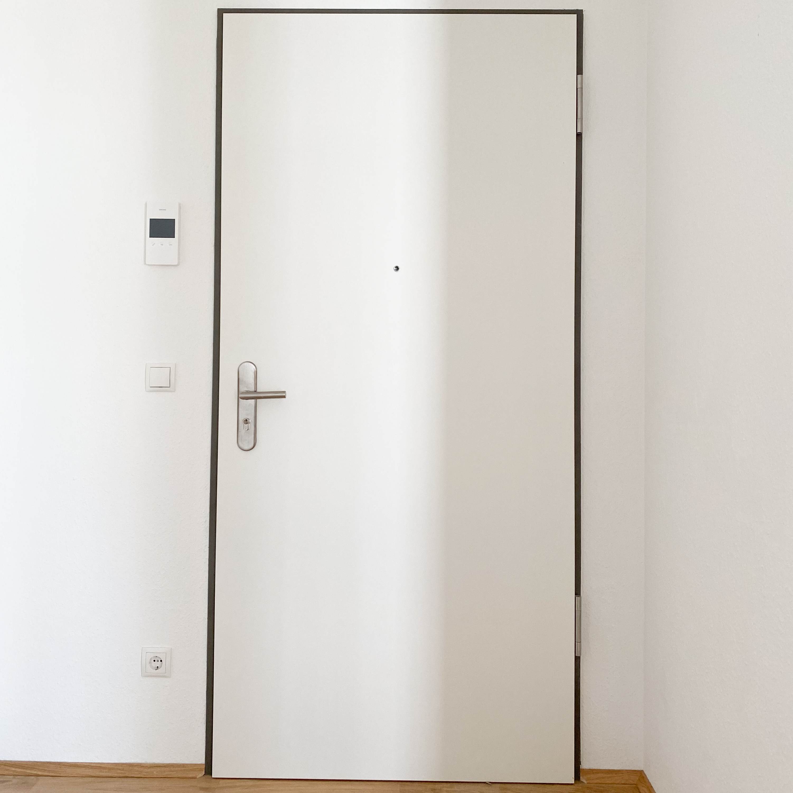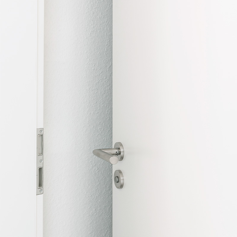 Manchmal ist es ganz gut, eine Tür hinter sich schließen zu können, ob als Abgrenzung zum privaten Bereich oder auch zwischen den Räumen. Die Ausführung der Drückergarnituren erfolgt in Aluminium. Die Holztürblätter aus Röhrenspan sind in CPL-Weißlack und unterseitig leicht gekürzt (Unterschnitt).